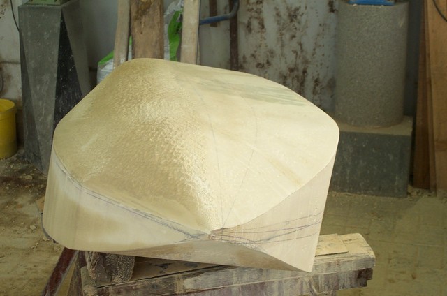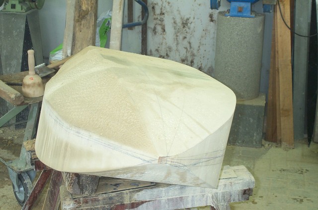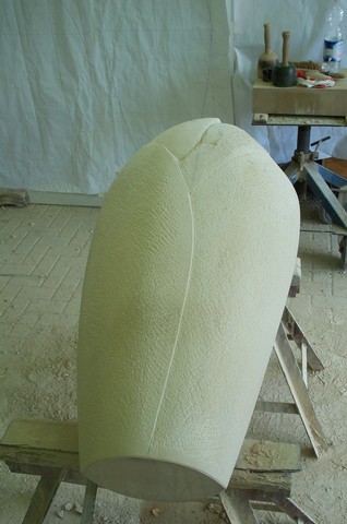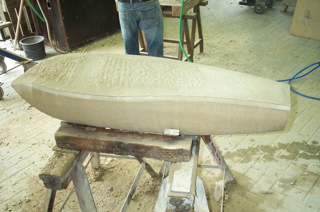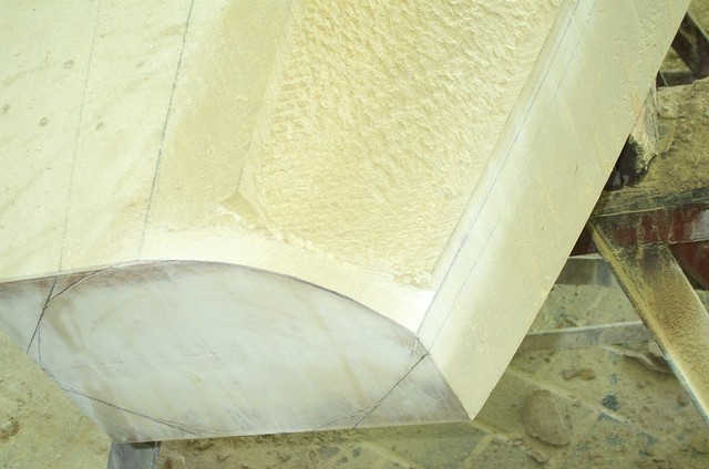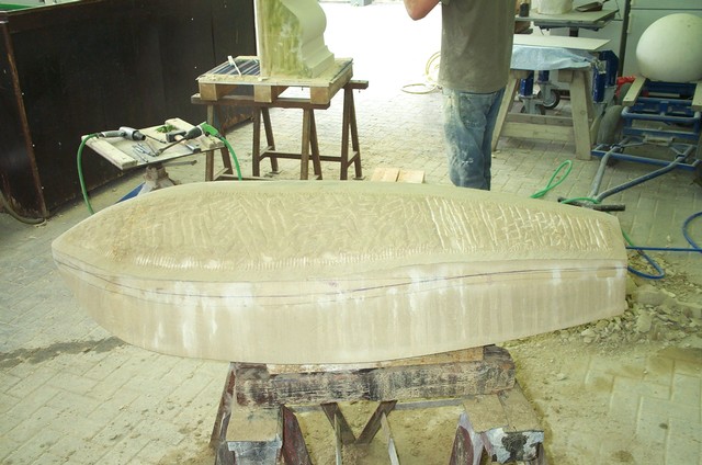 Fotodokumentation über die Herstellung meines Meisterstückes.In reiner Handarbeit aus einem Block Baumberger Sandsteinvon 130x60x40 cm.